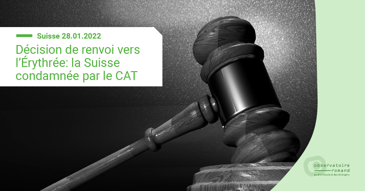 Suisse, 28 janvier 2022 – Dans deux décisions de juillet 2021 (X c. Suisse) et janvier 2022 (Y c. Suisse), le Comité contre la torture (CAT) a déclaré que les décisions de renvois prises par la Suisse envers des requérants érythréens, tous deux arrivés mineurs non accompagnés, violaient la Convention de l’ONU contre la torture. Les deux affaires portent sur le risque de subir des mauvais traitements en cas de renvoi en Érythrée (violation des art. 3 et 16 de la Convention).