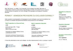 Pour plus d’informations sur la problématique : consultez le dépliant de témoignages et le rapport de l’ODAE romand Permis F : admission provisoire ou exclusion durable ? qui est à la base de cette exposition ; effectuez une recherche parmi nos Fiches descriptives avec le mot-clé Admission provisoire.